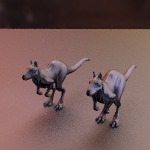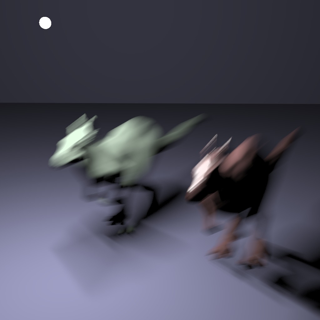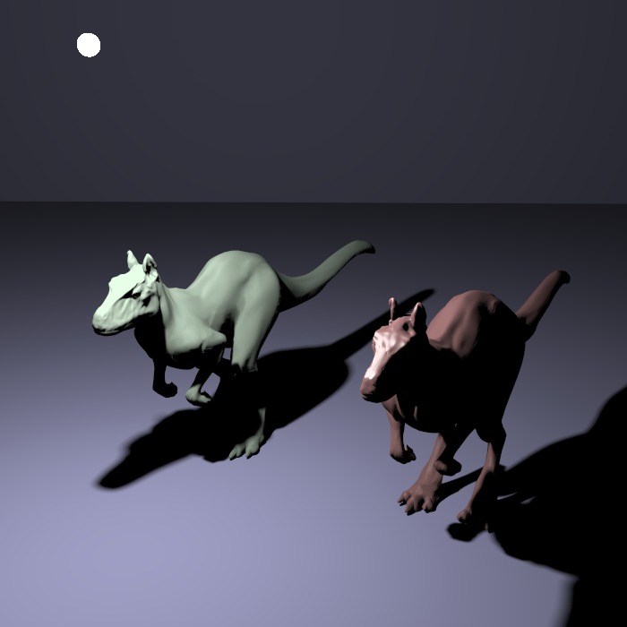 | anim-killeroos-moving.pbrt: Another simple animation example; note that both the killeroos and their shadows are blurred. (Killeroo model courtesy of headus/Rezard.) | |