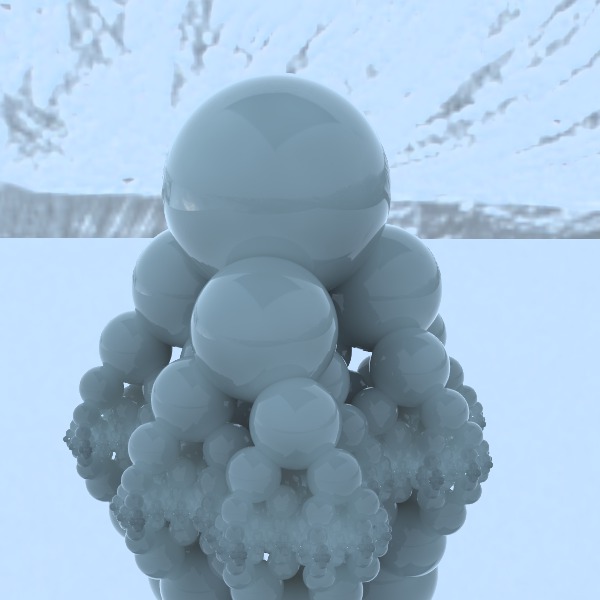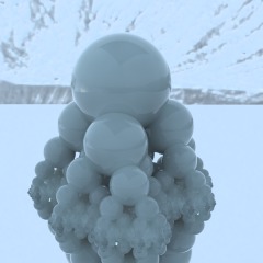 | ballpile.pbrt: this model was also generated by Structure Synth and was exported with the pbrt exporter. Here, subsurface scattering is used for rendering the balls. | |