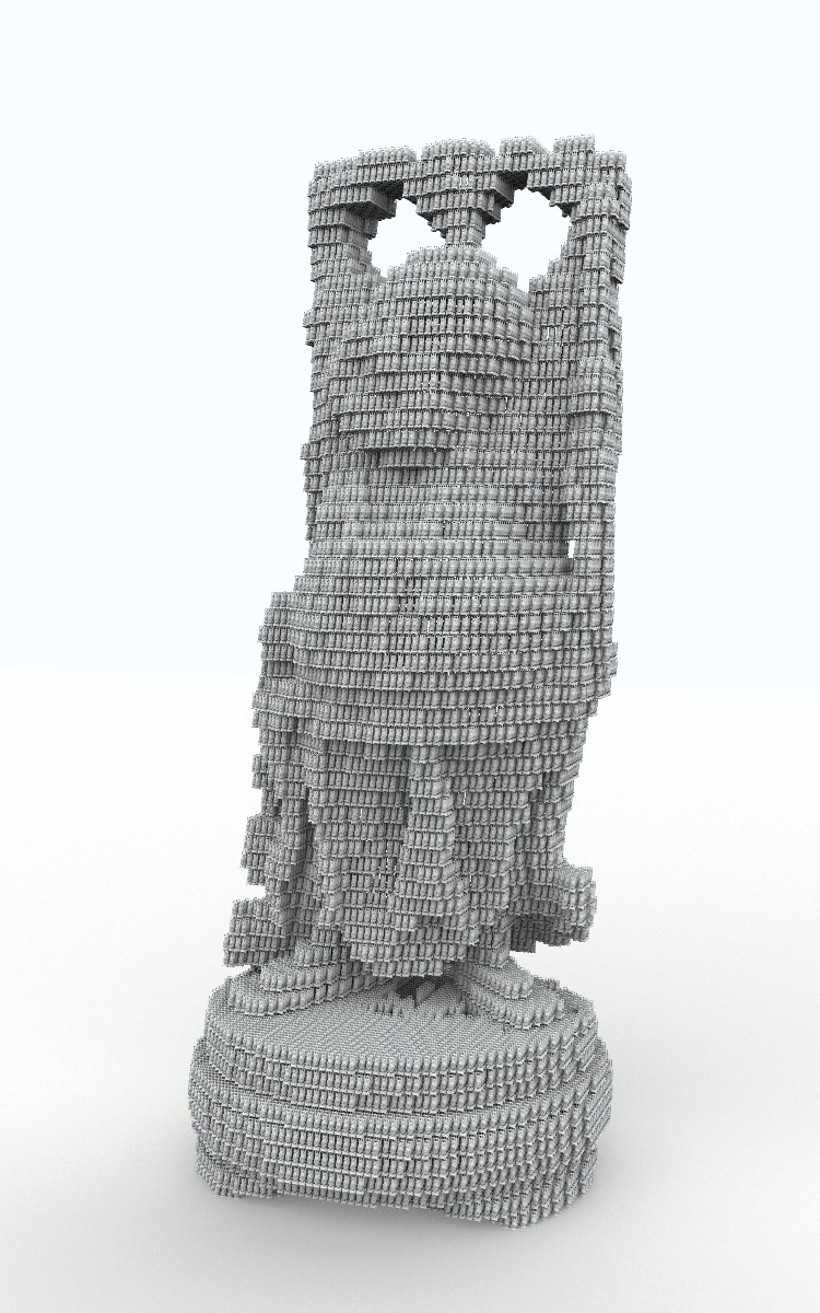 | buddhamesh.pbrt: In a clever example of object instancing (and recursion), Guillermo M. Leal Llaguno of Evolución Visual created a representation of the "happy buddha" out of hundreds of scaled-down instances of the happy buddha model. | |