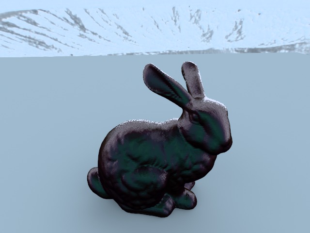 | bunny.pbrt: bunny model (courtesy of the Stanford 3D Scanning Repository), rendered with a paint BRDF measured by the Cornell Graphics Lab. | |