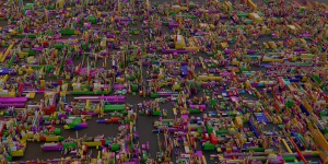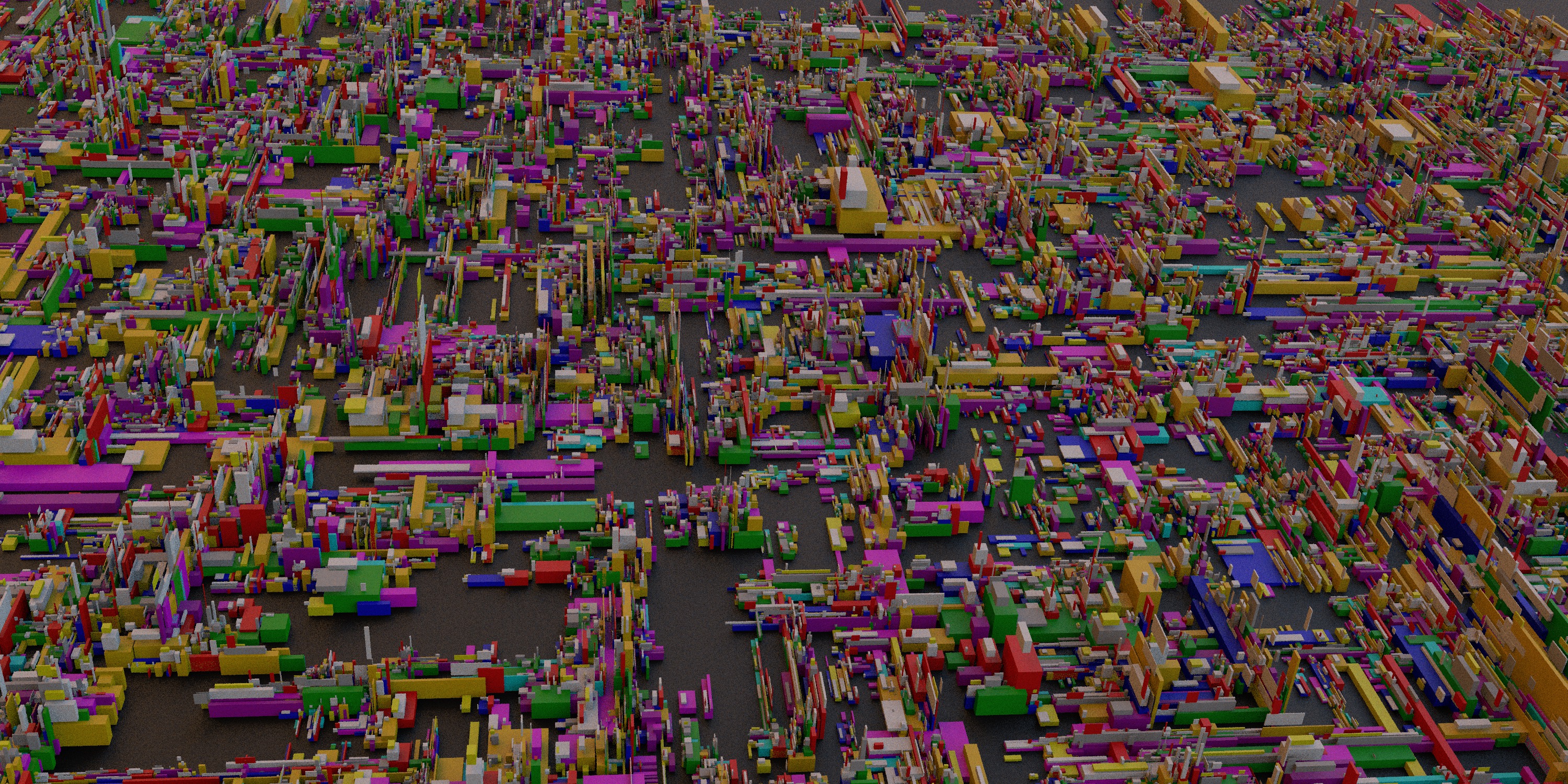 | microcity.pbrt: city modeled by Mark Schafer using the procedural modeling system Structure Synth, rendered with the ambient occlusion integrator and depth of field to give a sense of (small) scale. | |