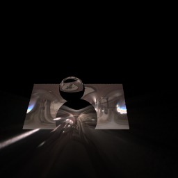 | caustic-proj.pbrt: image projected using the projection light source through a glass sphere, casting a caustic on the ground beneath it. | |