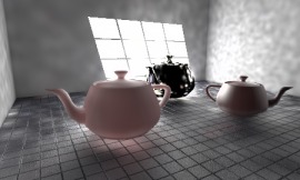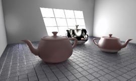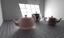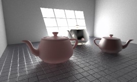 | room-photon.pbrt: room with teapots scene, rendered with photon mapping and final gathering. | |