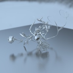 | yeahright.pbrt: Keenan Crane's interesting yeah, right model, rendered using a realistic silver metal model. It is reflected by a material that is a realistic model of aluminum and rendered with Metropolis light transport. |